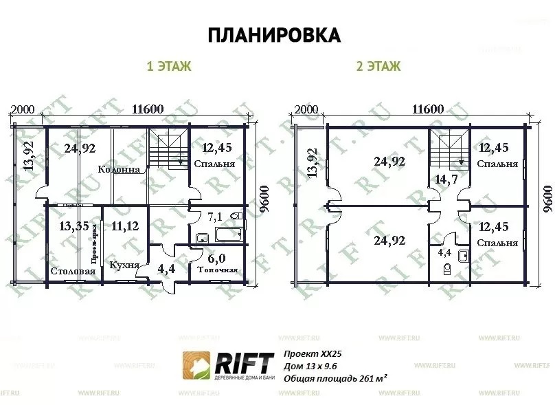 Наружные стены 1 этажа | Профилированный брус 145х145 мм. 195х145 мм. (опция) | |
