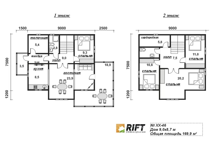 Высота 2-ого этажа | 2400 мм. | |
