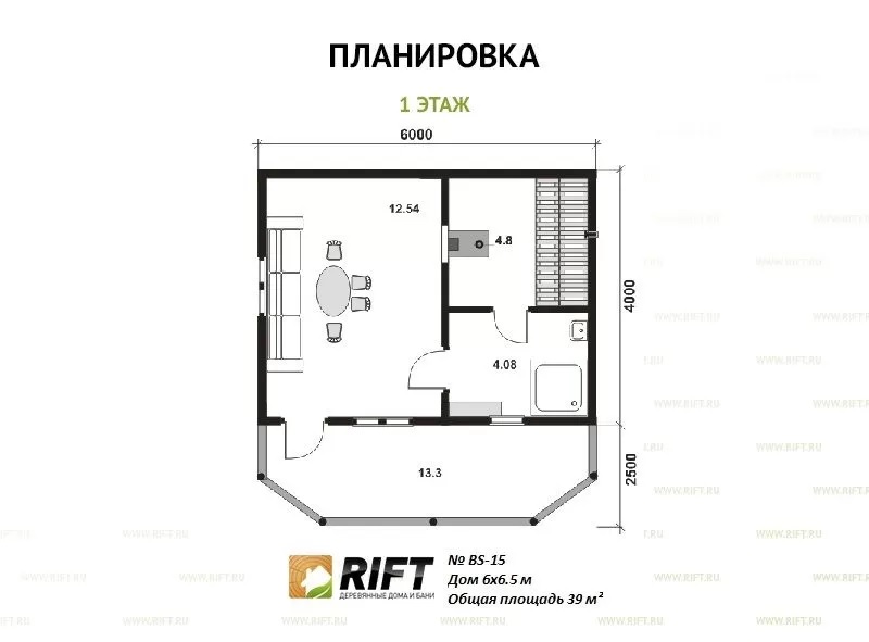 Пол | Черновой пол выполняется из доски 25 мм, чистовой пол выполняется из OSB-3 толщиной 18 мм |