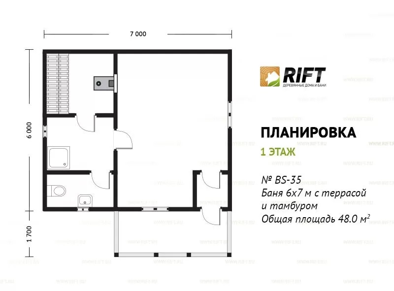 Каркасная баня BS35 — практичное решение для тех, кто хочет быстро и недорого построить баню на своем участке. Площадь 48 м² позволяет разместить просторную парную, моечную и комнату отдыха. Каркасная технология обеспечивает отличную теплоизоляцию и сокращает сроки строительства. Доступна установка свайно-винтового фундамента, утепление стен и крыши, а также проведение инженерных сетей.
