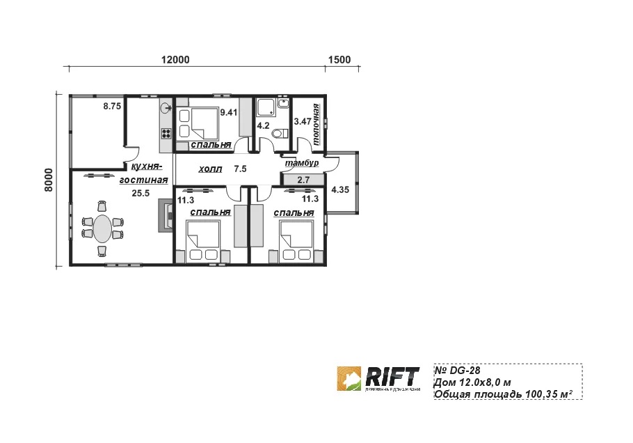 Каркасный дом DG28 — это современный и энергоэффективный проект, отлично подходящий как для дачного, так и для постоянного проживания. Удачная планировка позволяет организовать просторные жилые комнаты, кухню и санузел. Каркасная технология обеспечивает быструю сборку и позволяет использовать современные утеплители, обеспечивающие комфорт в любой сезон. Дом DG28 — практичное решение для тех, кто ценит комфорт и экономию.