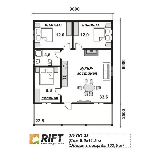 Проект каркасного дома DG33 от компании RIFT — это стильное и современное решение для загородного проживания. С общей площадью 80 м² и компактными размерами 8×8 м, этот дом идеально подходит для комфортного проживания небольшой семьи. Просторная и функциональная планировка включает в себя уютную гостиную, две спальни, кухню и ванную комнату, что создает удобство и комфорт для повседневной жизни.