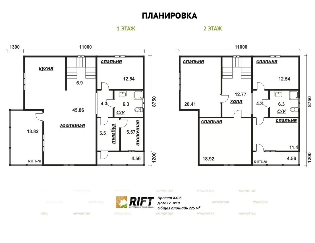 Пол | Черновой пол выполняется из доски 25 мм, чистовой пол выполняется из OSB-3 толщиной 18 мм | |