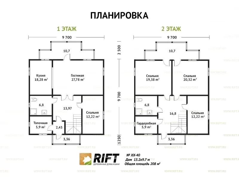 Пол | Черновой пол выполняется из доски 25 мм, чистовой пол выполняется из OSB-3 толщиной 18 мм | |