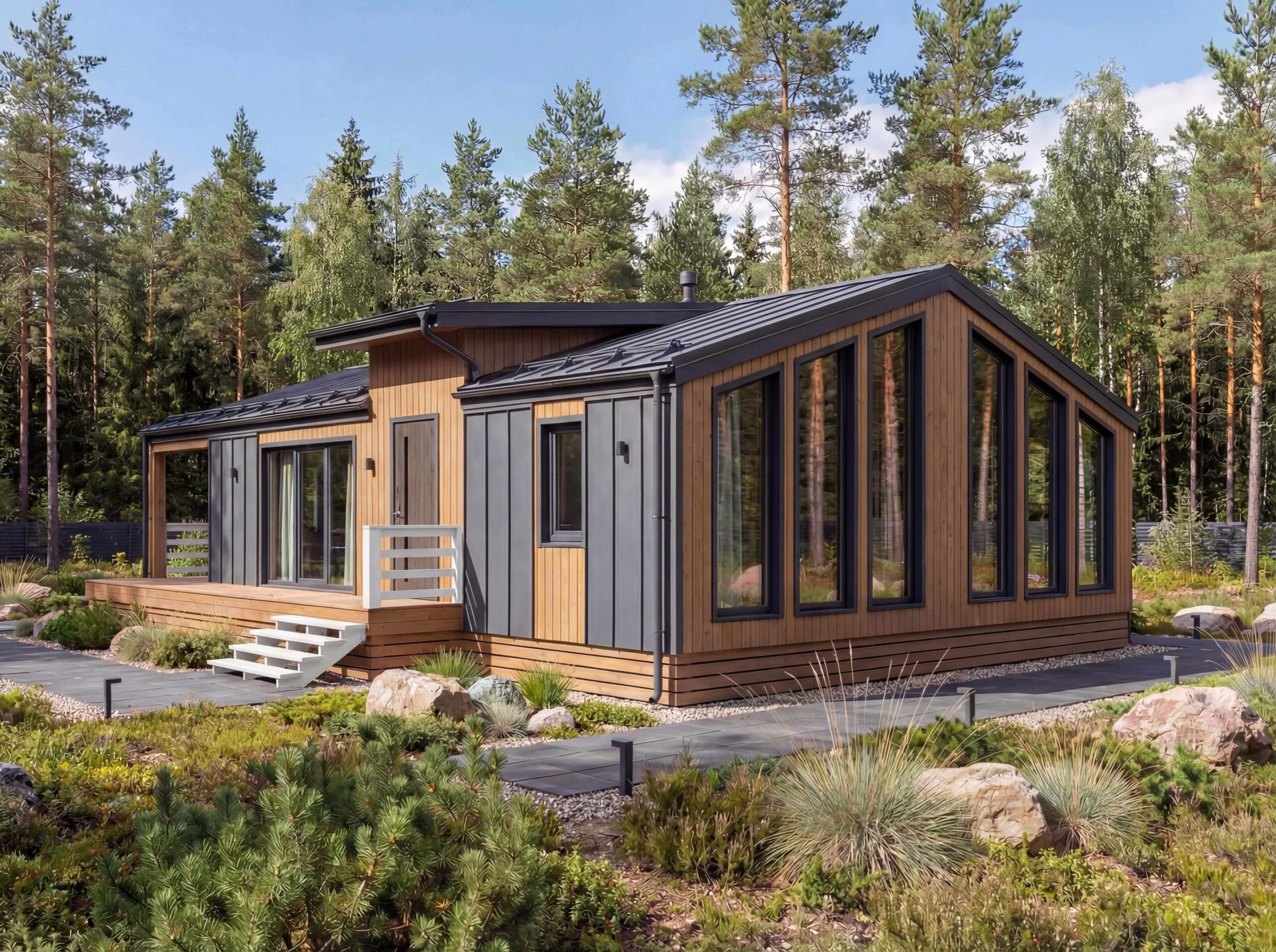 Все представленные в нашем каталоге коттеджи строятся из профилированного или строганого бруса, а также из оцилиндрованного бревна. Для их производства мы используем исключительно хвойные породы — ель, сосну, кедр и лиственницу. Каждое из технологических решений обладает собственными достоинствами. Так, дома из строганного бруса отличаются огромным запасом прочности и долговечности. В результате обработки древесина сохраняет оптимальную влажность. Для конструкций из профилированного бруса характерна равномерная усадка, а прекрасный эстетический вид позволяет сэкономить на финишных отделочных работах. Дома из оцилиндрованного бревна, помимо аутентичного облика в лучших традициях славянского зодчества, отличаются паропроницаемости — в силу ряда технологических особенностей обработки.