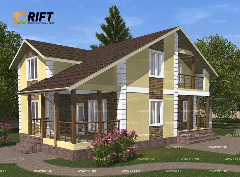 Один из популярных проектов каркасного дома 10 на 12 – «Семейное гнездо». Этот проект предусматривает двухэтажное размещение комнат. На первом этаже располагается просторная гостиная с камином, кухня-столовая, а также гостевая спальня с санузлом. На втором этаже – две детские спальни, родительская спальня с гардеробной и ванной комнатой.